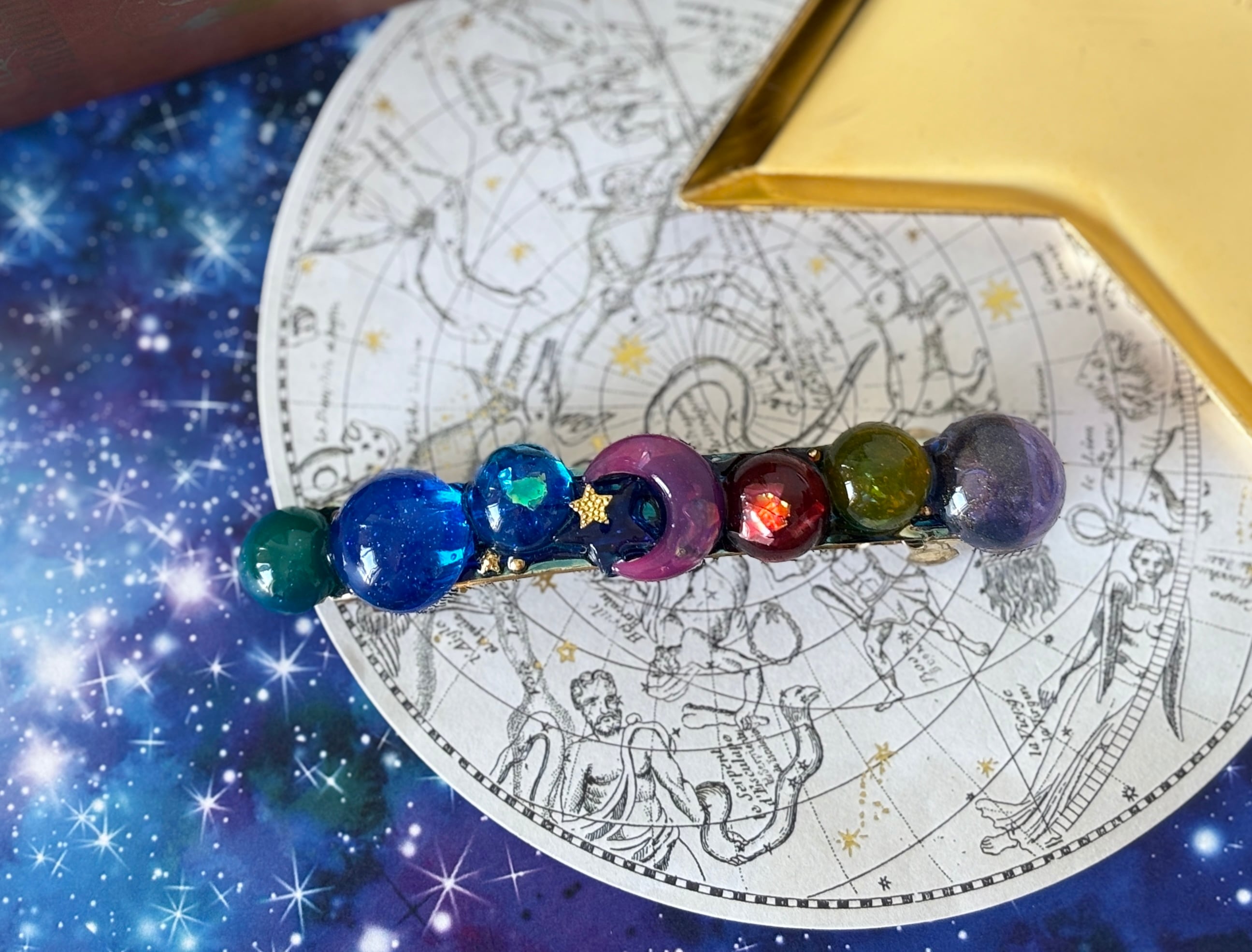 太陽系をイメージして作ったバレッタ★