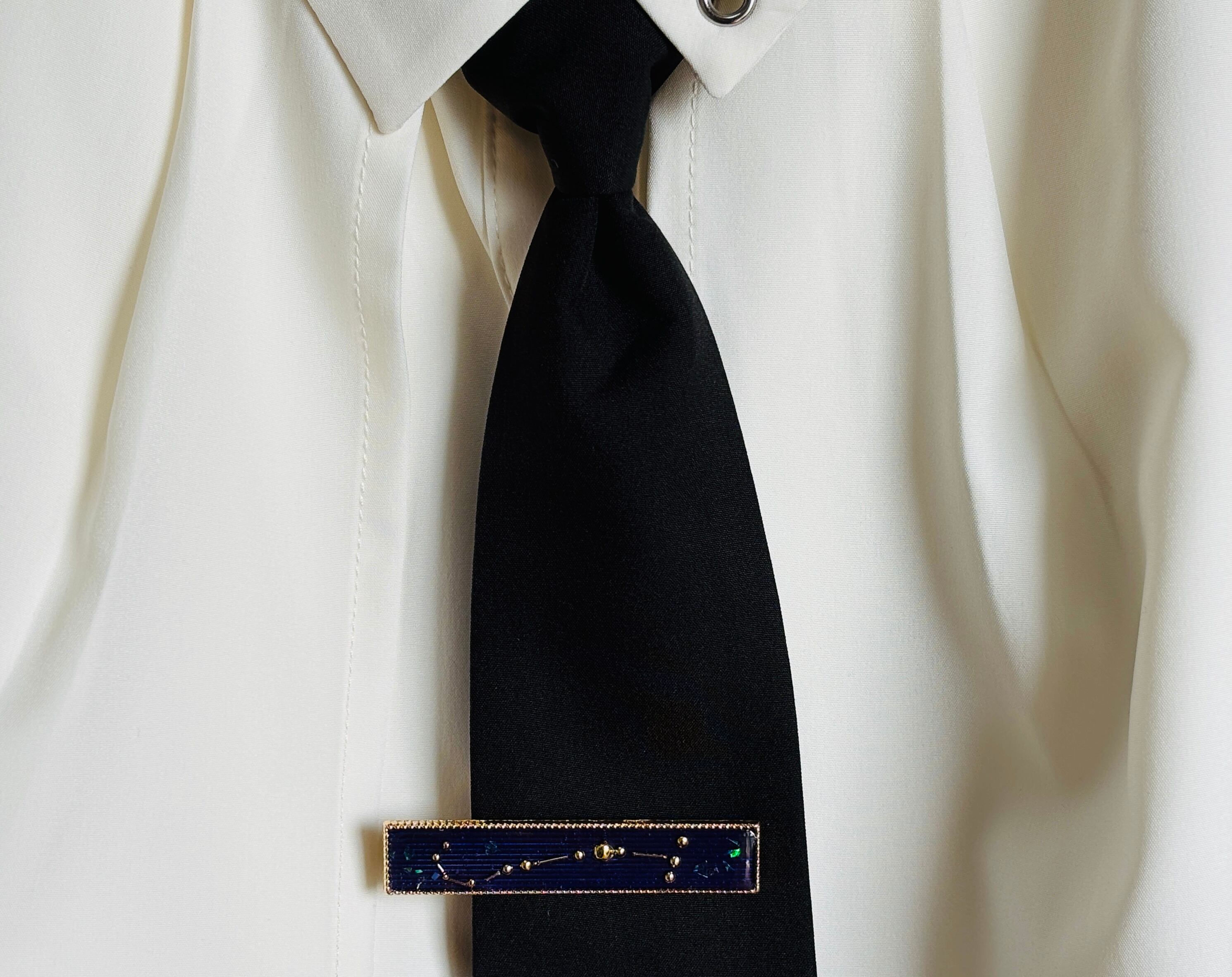 また、ネクタイピンやストール留めとして使うのもおすすめ。